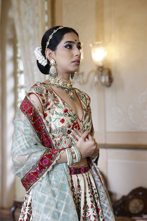 Ivory Kali Lehenga with Choli and Dupatta