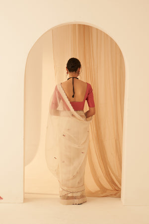 Ivory Organza Resham Jaal Saree