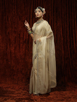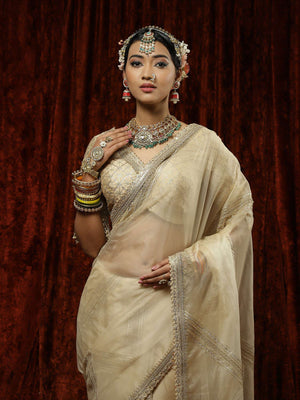 Ivory Organza Gota Leheriya Saree & Blouse Set