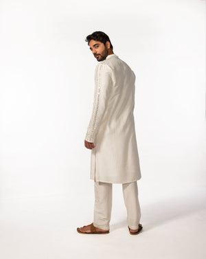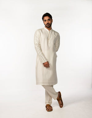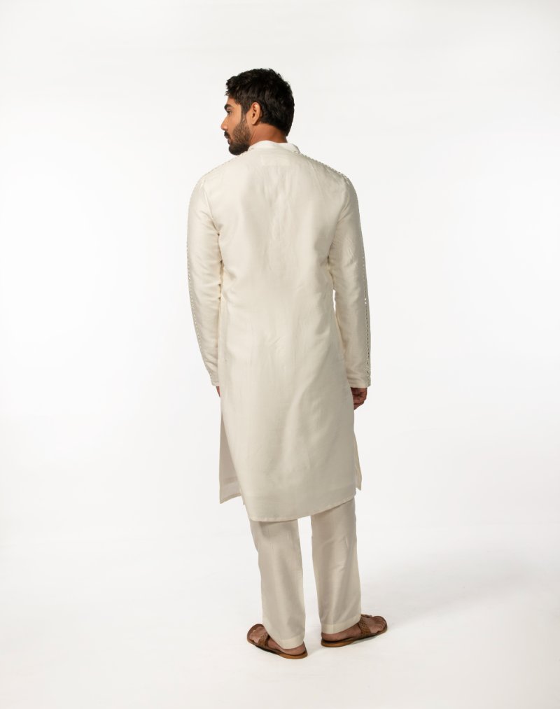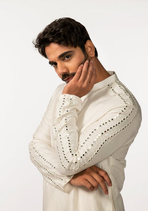 Ivory Sleeve Embroidered Mirror Kurta