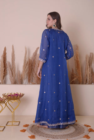 Featuring A Jacket Anarkali Set With Hand Gota Emb On Its Jacket & Anarkali. It Has An Organza Jacket With Gota Patti Work, & Underneath There Is A Tissue Anarkali.
