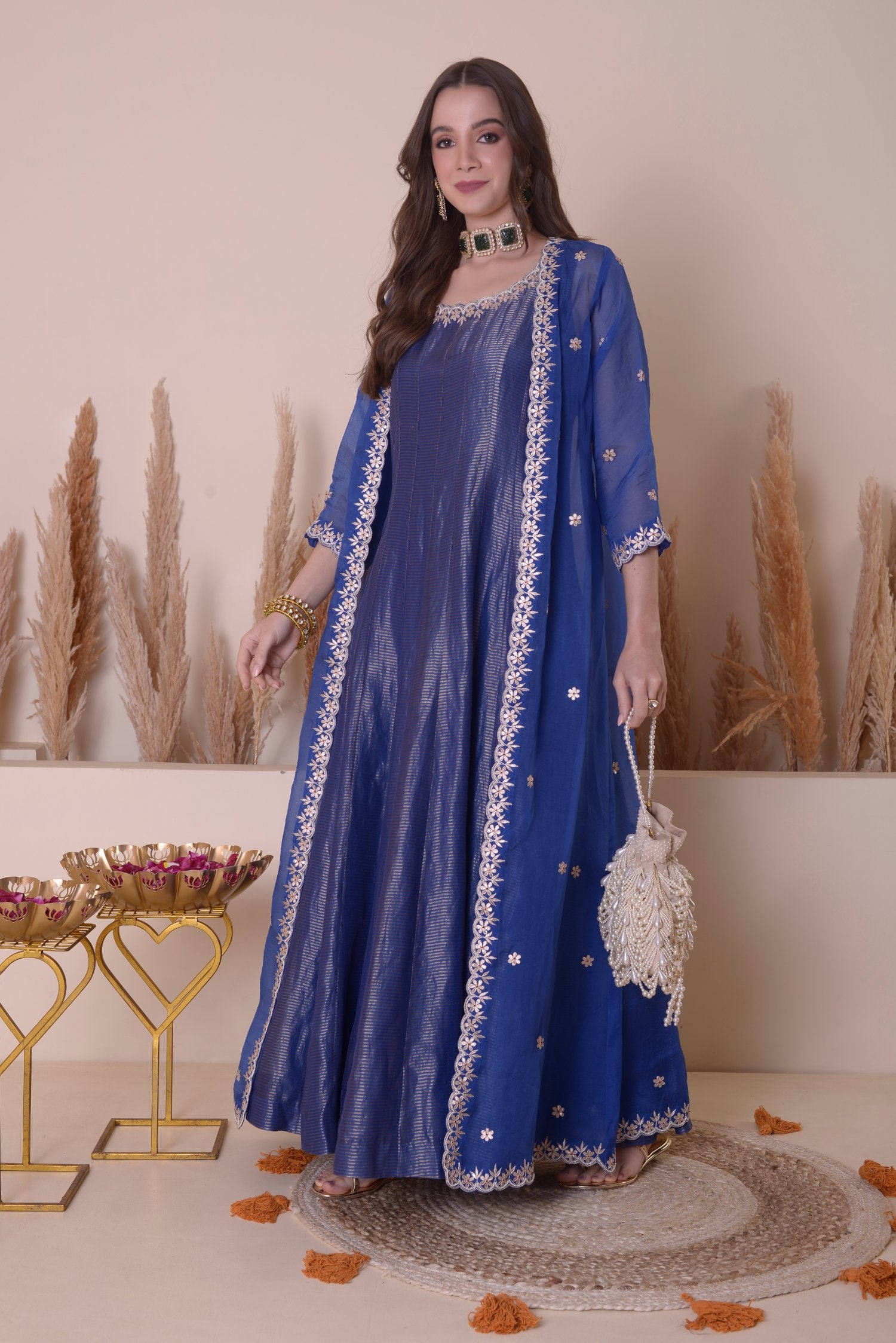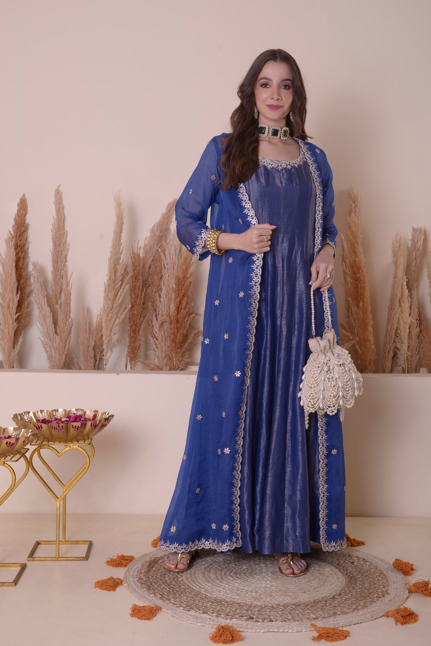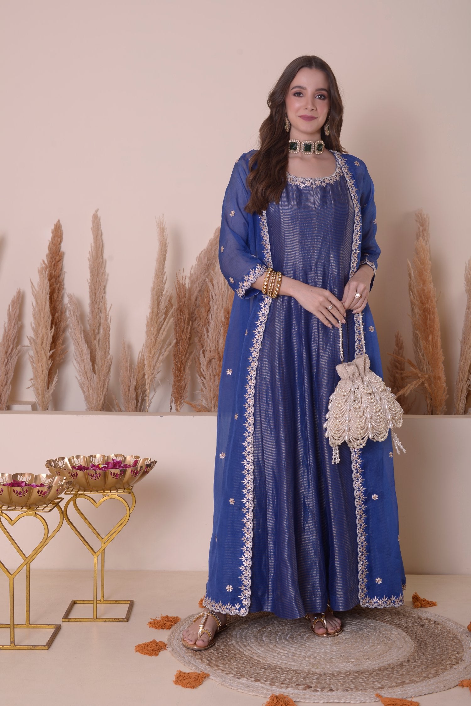 Fabric: Tissue Chanderi Anarkali With Organza Duppatta