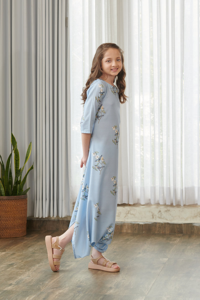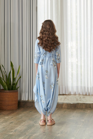 A dhoti? style jumpsuit with soft floral drapes — easy to wear, comfy to move in, and perfect for fuss? free festive dressing.