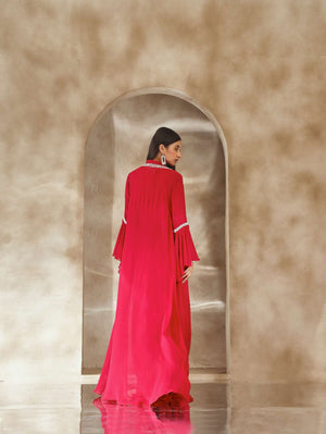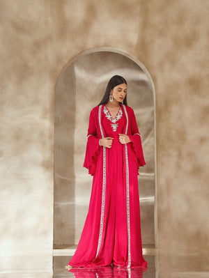 Kurta With An Embellished Neckline And Sleeves Paired With Pleated Pants And Scalloped Organza Dupatta.