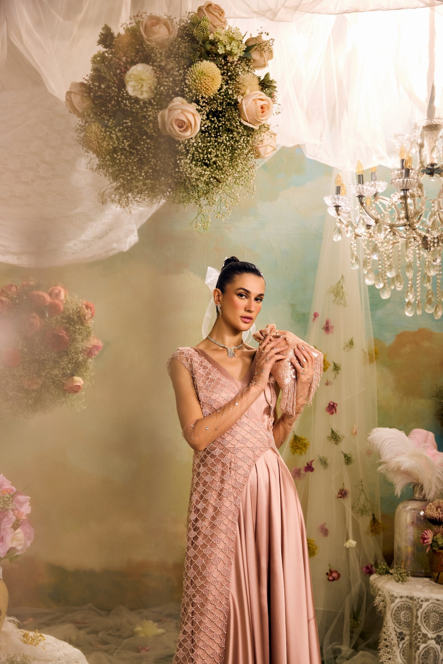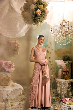 An asymmetrical wrap cape with a jumpsuit that is flowy and captivating