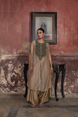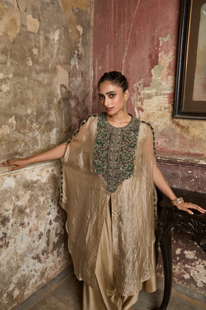Thread And Dori Work On Crushed Silk Kaftan With Inner And Pant