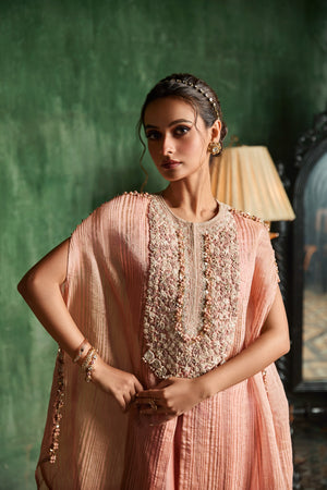 Resham And Maal Work On Tissue Kaftan With Inner And Pant