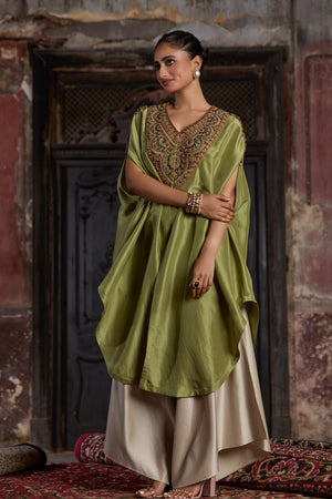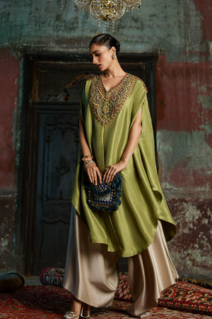 Multithread Work On Silk Kaftan With Cotton Satin Pant