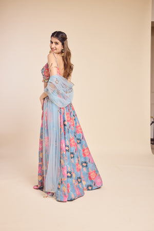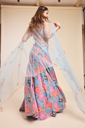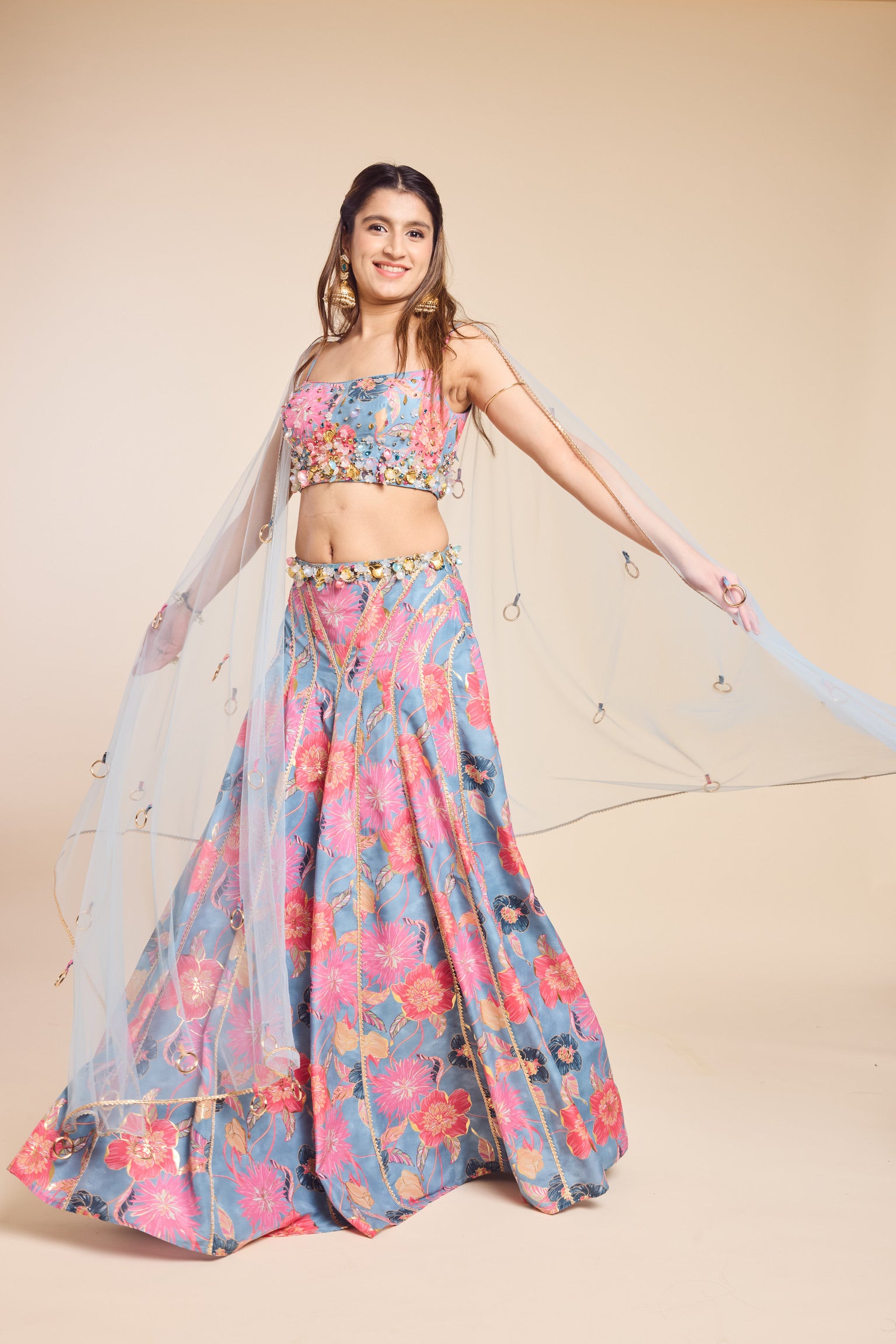 Kali Skirt with Embroidered Blouse and Shrug/Dupatta