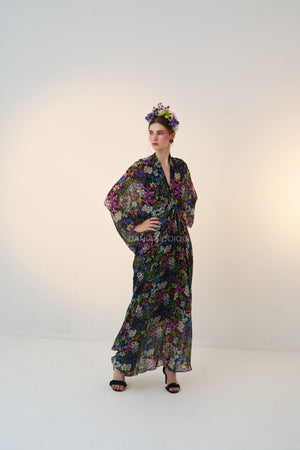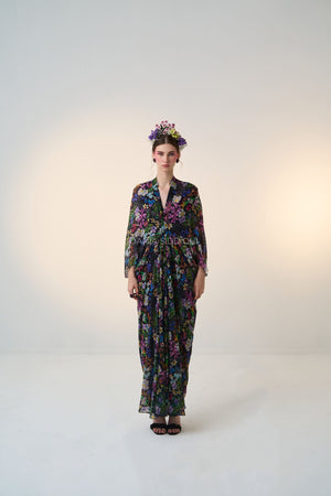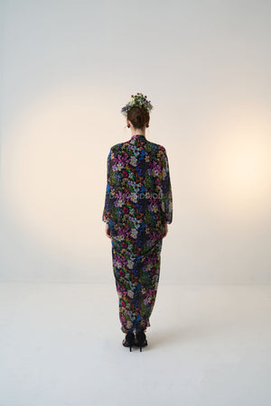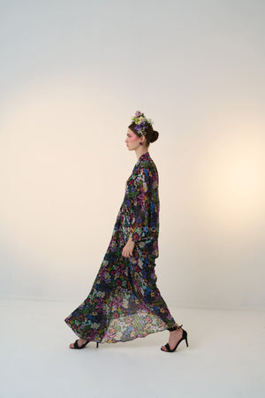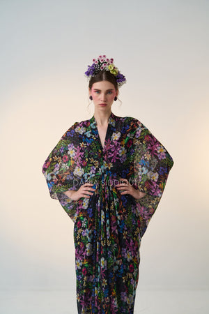 Black base, multi colored floral print