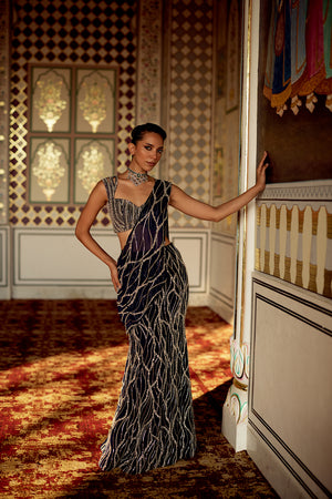 Twisty Line Embroidery, Drape Saree With Embellished Blouse