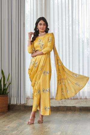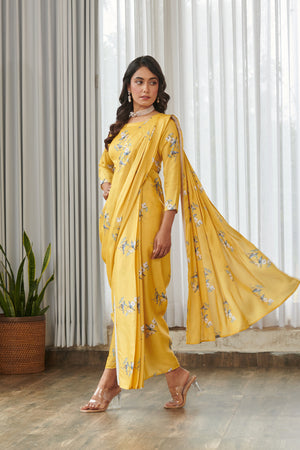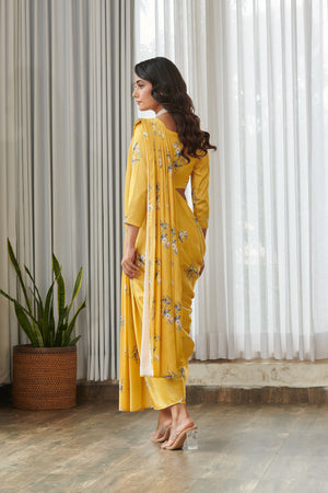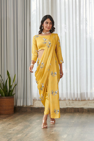 Kesar Yellow Blouse Saree & Dhoti Pants