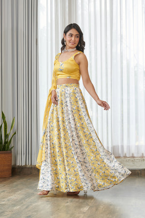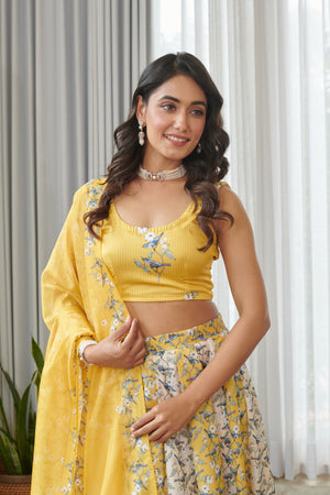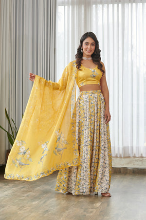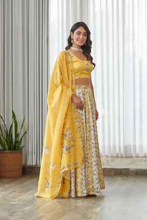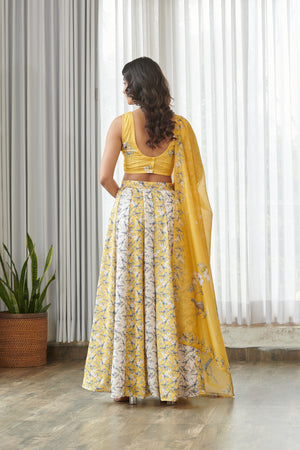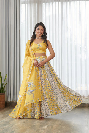 A vibrant floral kalidar lehenga designed for effortless twirls — fun, festive, and elegant while staying light and fuss?free. Perfect for celebrations where comfort meets charm.