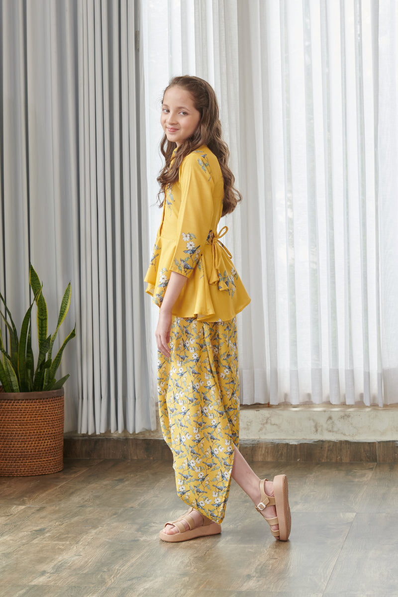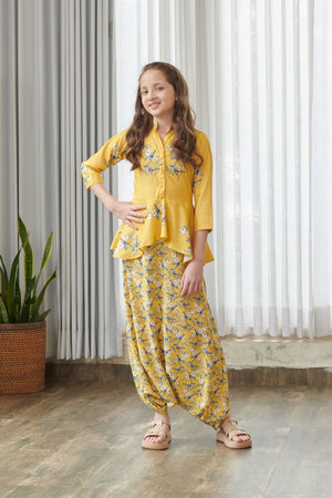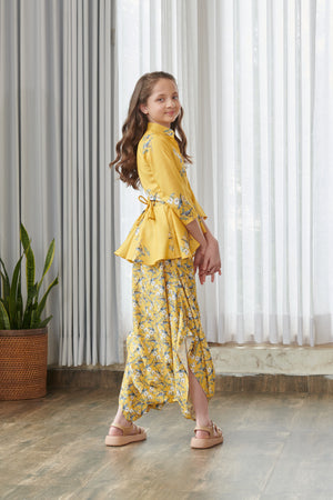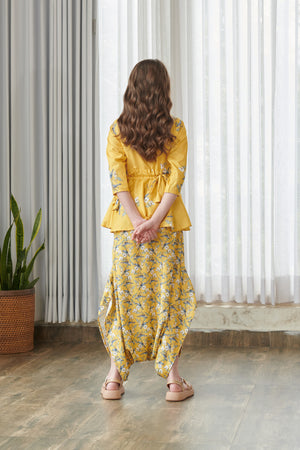Kesar Yellow Peplum Dhoti Jumpsuit Kids