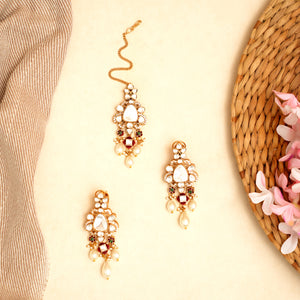 Make every occasion unforgettable with this Kundan Meena work necklace set with pearls and tikka — a luxurious combination of artistry, tradition, and designer elegance.