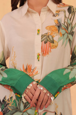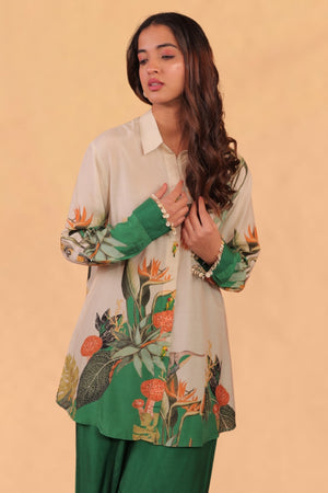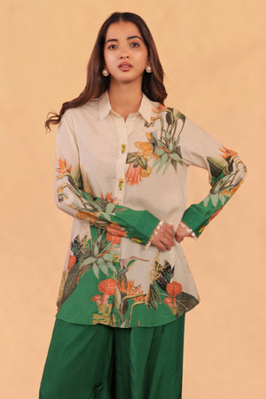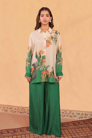 Kokum co-ord set features a relax fit shirt with pants.