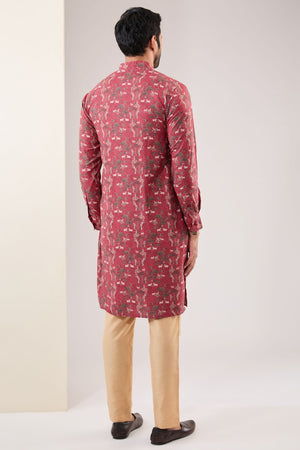 Red Georgette Both Side Pichwai Printed Kurta W Front Gorgette Sequin , Back & Slvees Crepe W Gold Cotton Silk Pant