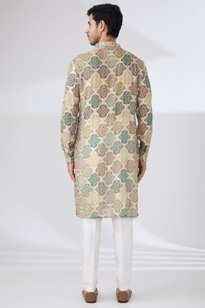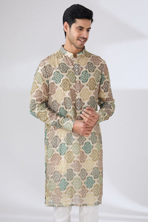 Green Bandhini With Golden Sequin Unlined Kurta W Cotton Silk Pant
