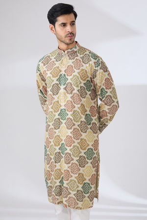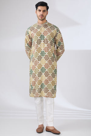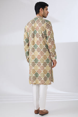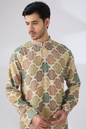 Multi Green Bandhni With Tonal Sequin Unlined Kurta W Cotton Silk Pant