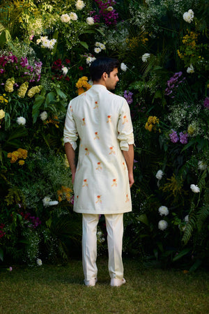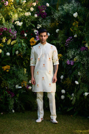 Winter white hand block printed kurta and trousers