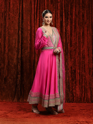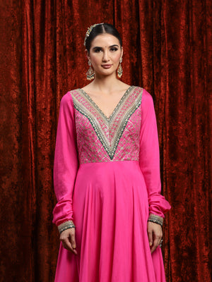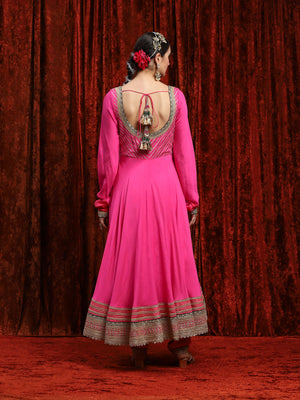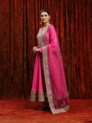 Kush Pink & Green Silk Chanderi Anarkali Suit