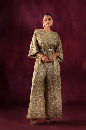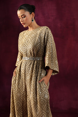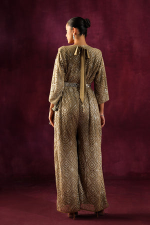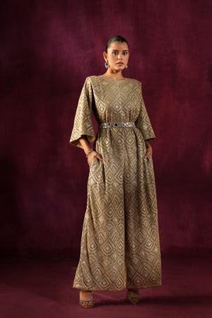 Lace Mirrorwork Jumpsuit with Hand Embroidered Mirrorwork Belt