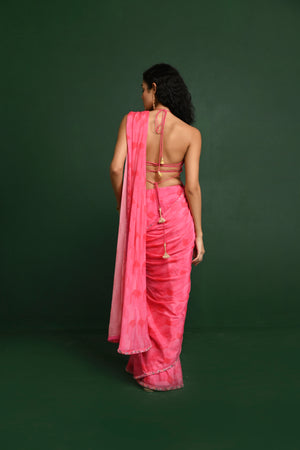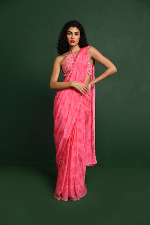 Beaded Blouse Paired With Printed Pre Pleated Saree