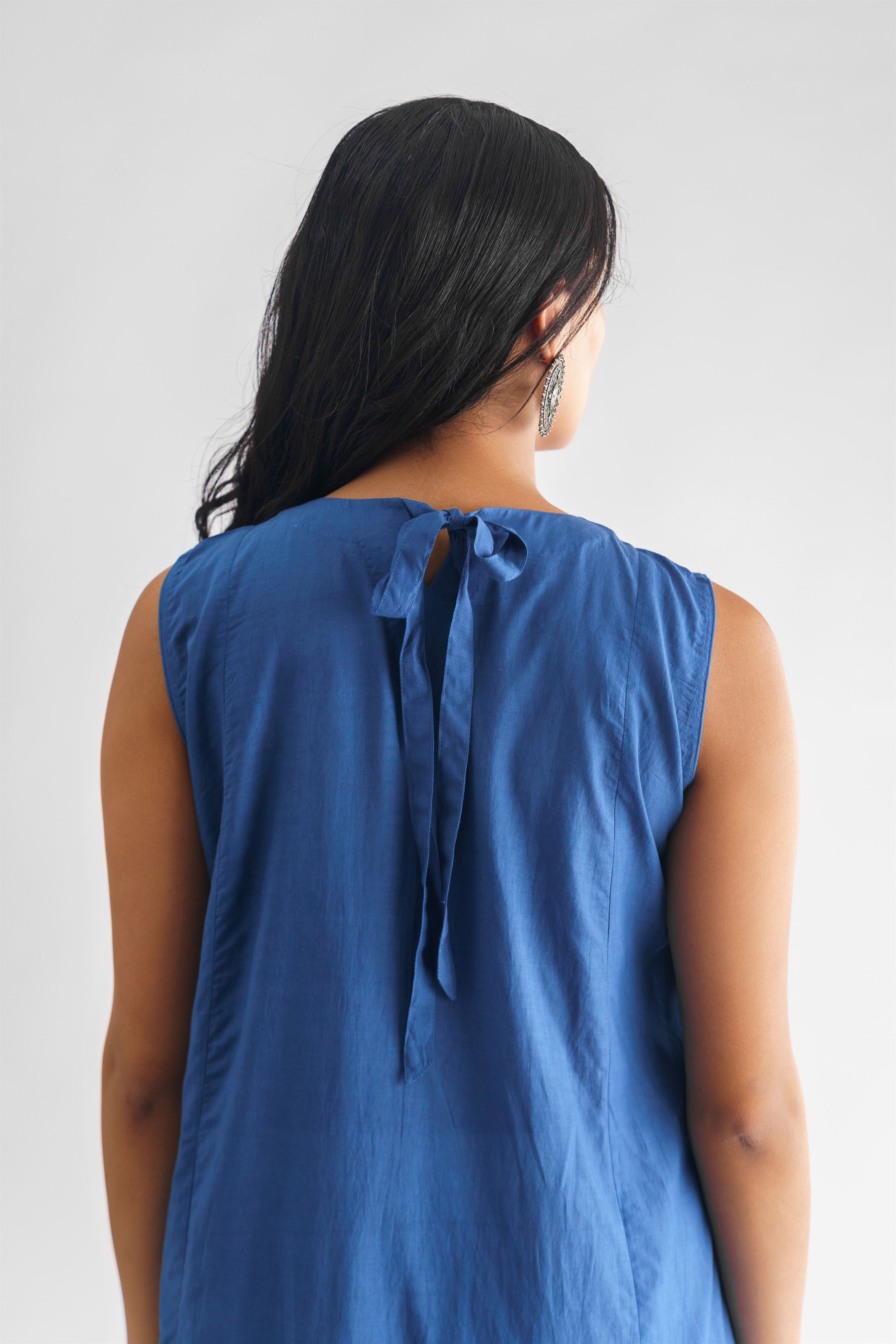 This exquisite cotton silk kurta in blue is sure to leave a lasting impression with its elegant yet simple design with beaded potli buttons adorning the front. The shoulder princess seam panelling is accentuated with beautiful white beads, adding to the kurta's charm. The A-line silhouette and round neckline, complete with tie-up detail at the back, make for an absolutely remarkable piece that is sure to steal the show.