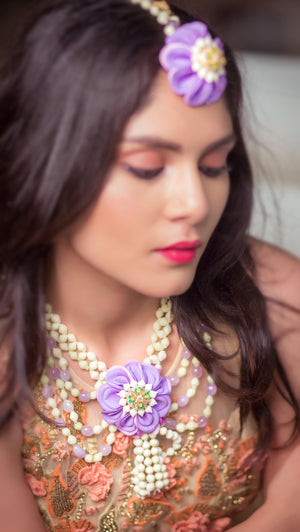 Lavender Lusture Layered Mogra Necklace