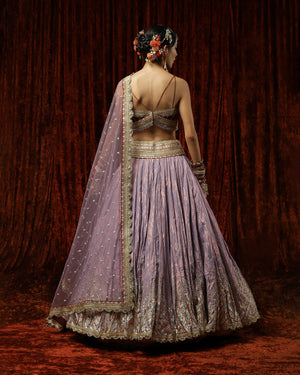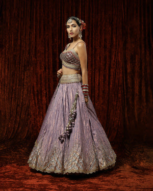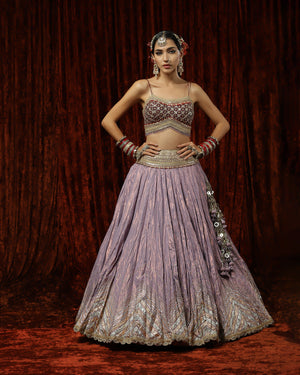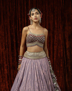Lavender & Maroon Crinkle Gota Lehenga Set