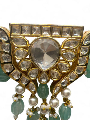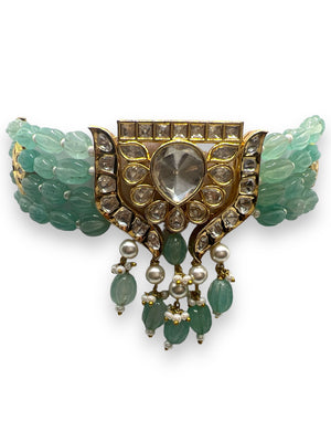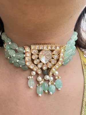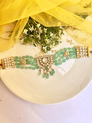 Le Ajustin Green Beads & White Khundan Necklace Set