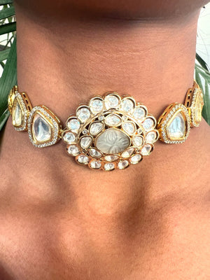 Le Hana Gold And White Kundan Necklace