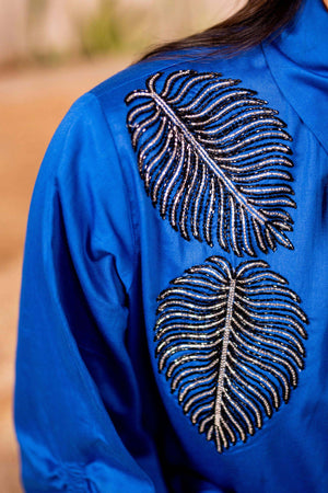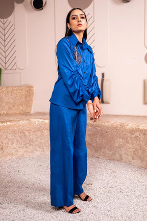This blue Giza cotton co-ord set is versatile and can be dressed up or down for various occasions. Pair it with sneakers or sandals for a casual and effortless look, or dress it up with heels and accessories for a more polished and chic ensemble.