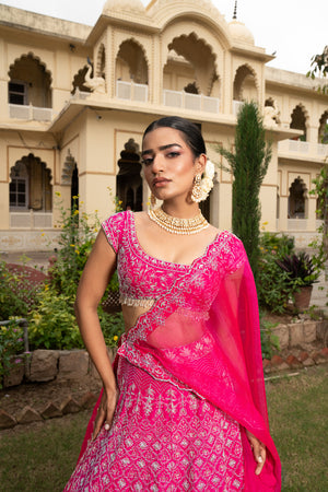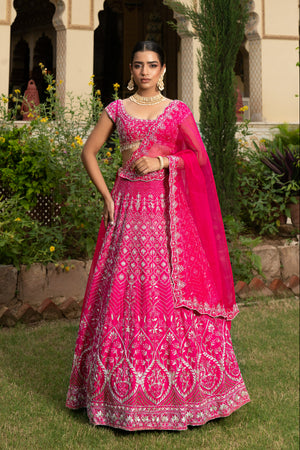 LEHENGA + BLOUSE + DUPATTA // FUSHSIA PINK ZARDOSI LEHENGA SET