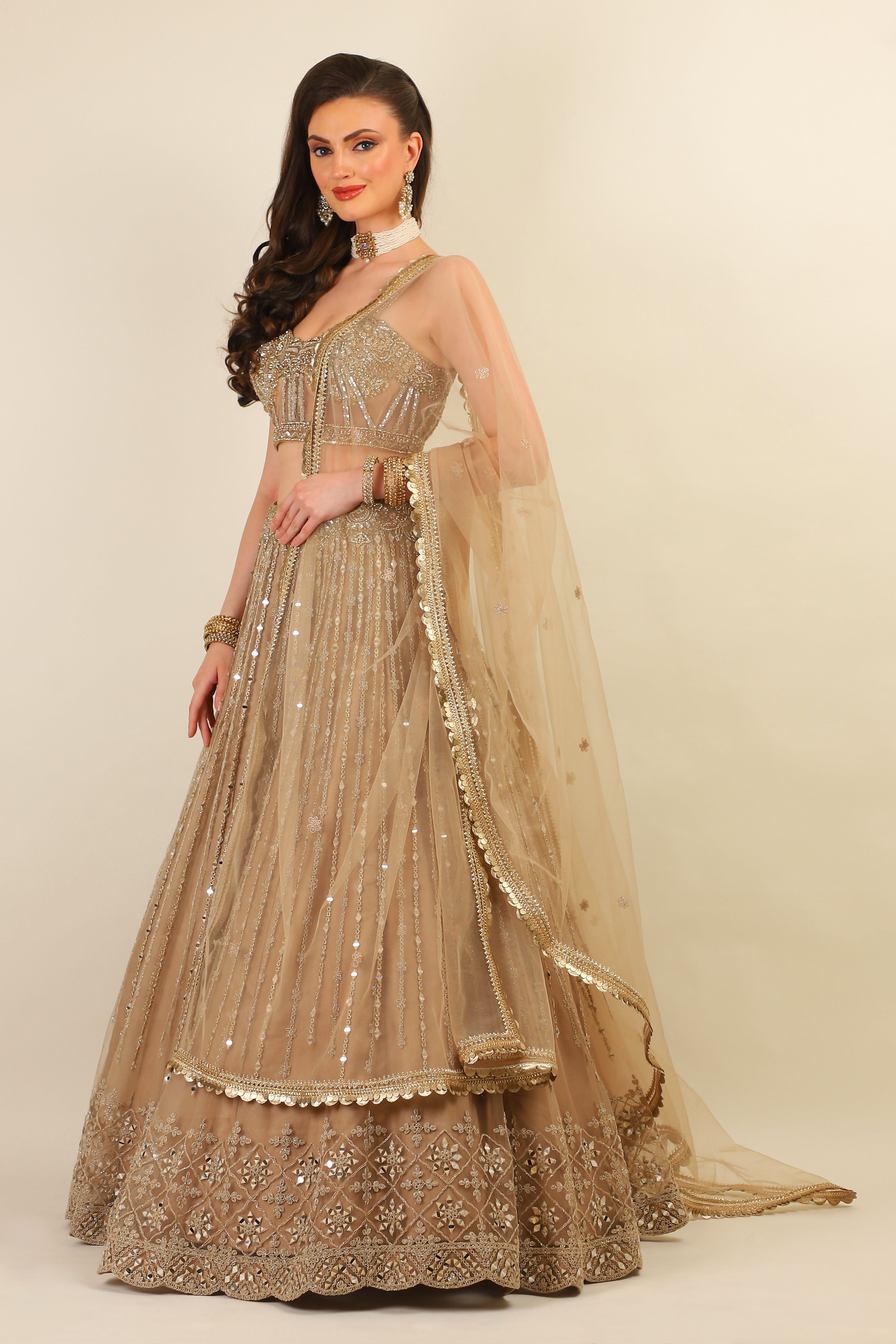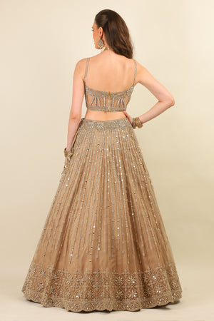 Hand Made Crystal Work Top With Embroidered Georgette Lehenga