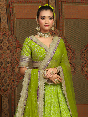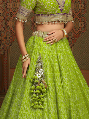 Lemon Green And Purple Lehenga Set