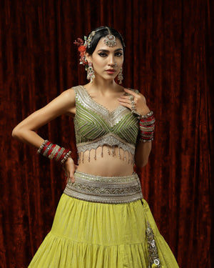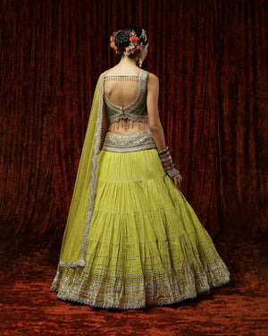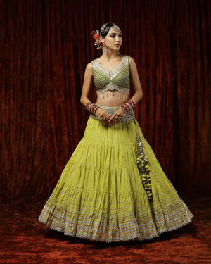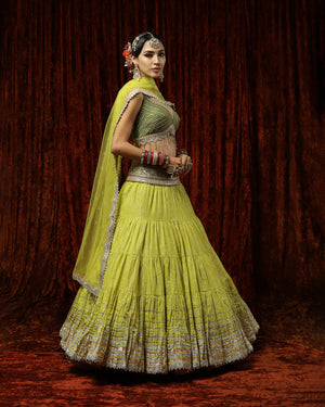 Lemon Green & Olive Crinkle Gota Lehenga Set