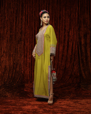 Lemon Green & Rani Pink Kurta Kaftan