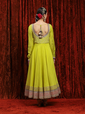 Lemon Green, Rani Pink & Purple Silk Chanderi Anarkali Suit
