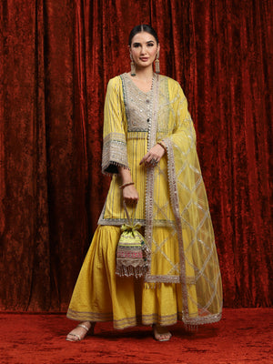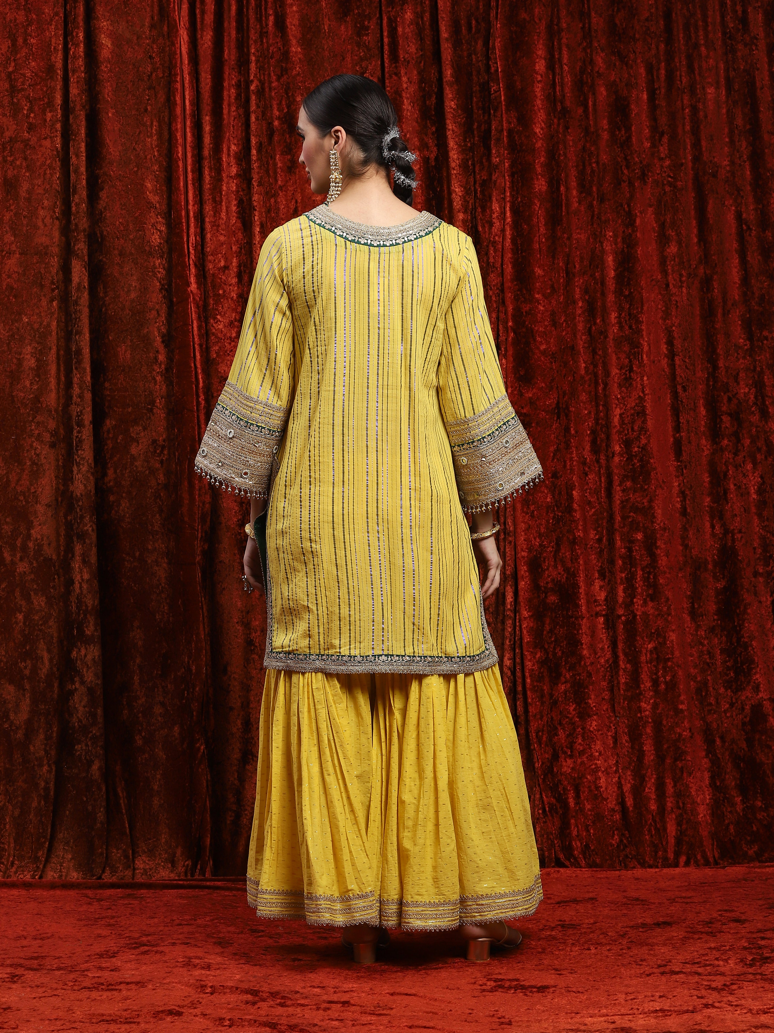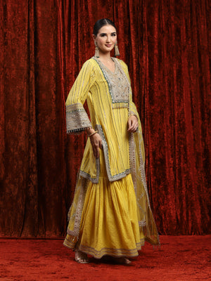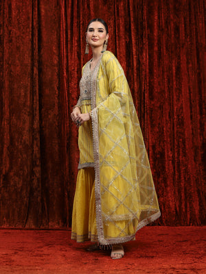 Lemon Yellow & Green Kurta Sharara Dupatta Set