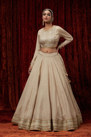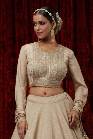 Light Gold Cotton Chanderi Lehenga Set