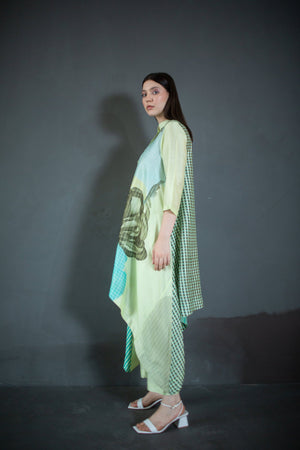Light Green Long Kaftan Tail Set