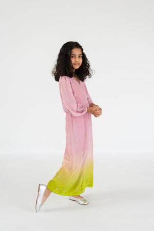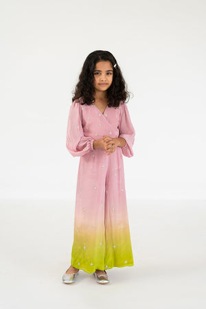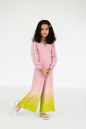 LIGHT PINK-PARROT GREEN OMBRE OVERLAP JUMPSUIT