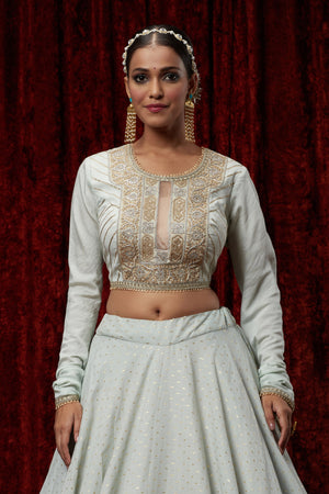 Light Sky Blue Cotton Chanderi Lehenga Set
