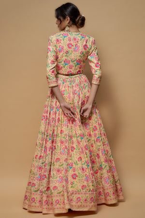 Light Yellow French Crepe Printed Jacket Lehenga Set