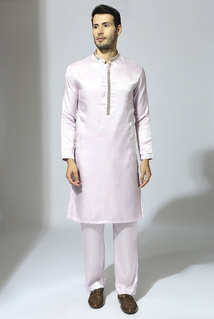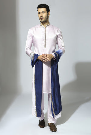 Lilac Embroidered Kurta Set With Blue Dupatta