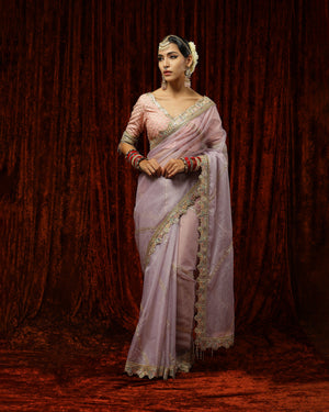 Lilac & Pink Saree & Blouse Set