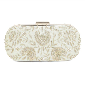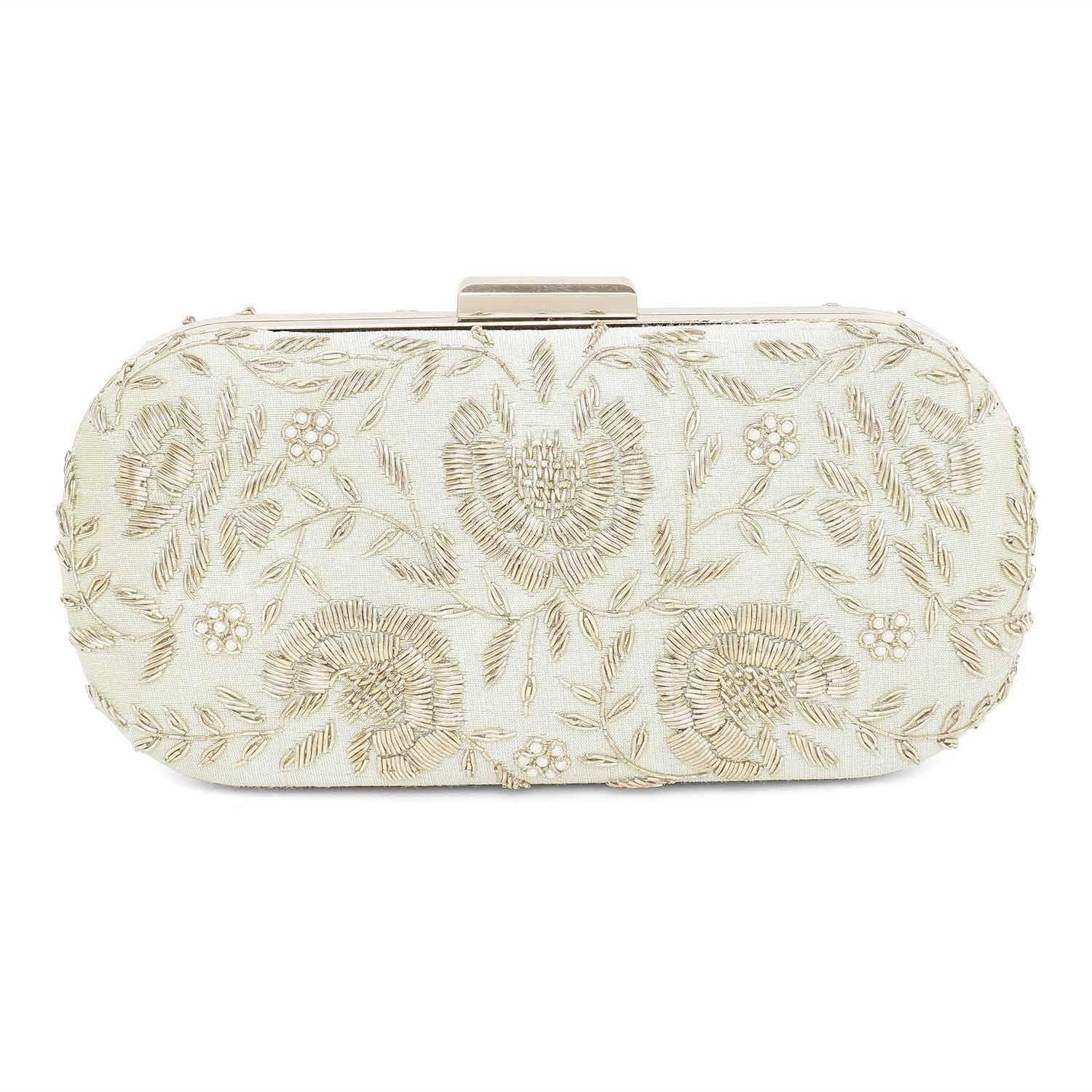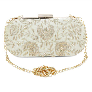 With scintillating design and hand embroidery this clutch bag comes with a detachable sling chain. Carry it with the chain or simply clutch it.
