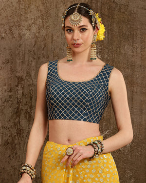Lime yellow & Cobalt blue Saree & Blouse Set