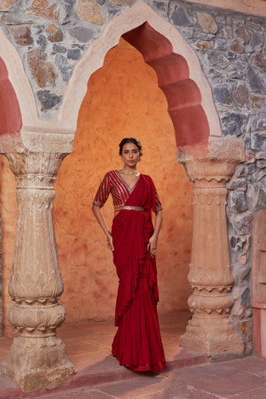 Lok Rang Utsav Saree With Embroidered Blouse And Belt